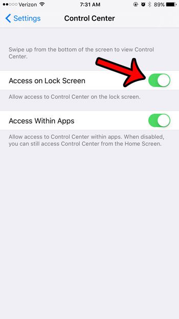 - 打開在鎖屏上訪問選項。