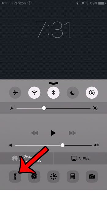 現在,您只需從鎖定屏幕底部向上滑動即可打開控制中心,然後點擊屏幕左下角的手電筒圖標。