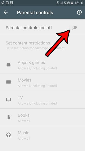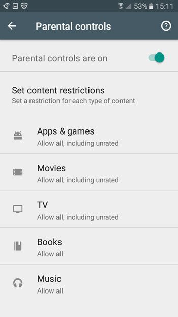 然後,您將能夠通過限制可通過 Play 商店訪問的應用程序、音樂、電影、書籍等的成熟度級別來指定您希望在設備上允許的內容類型。