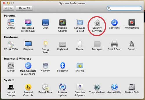 第 2 步:單擊安全與隱私圖標在個人的窗口頂部的部分。