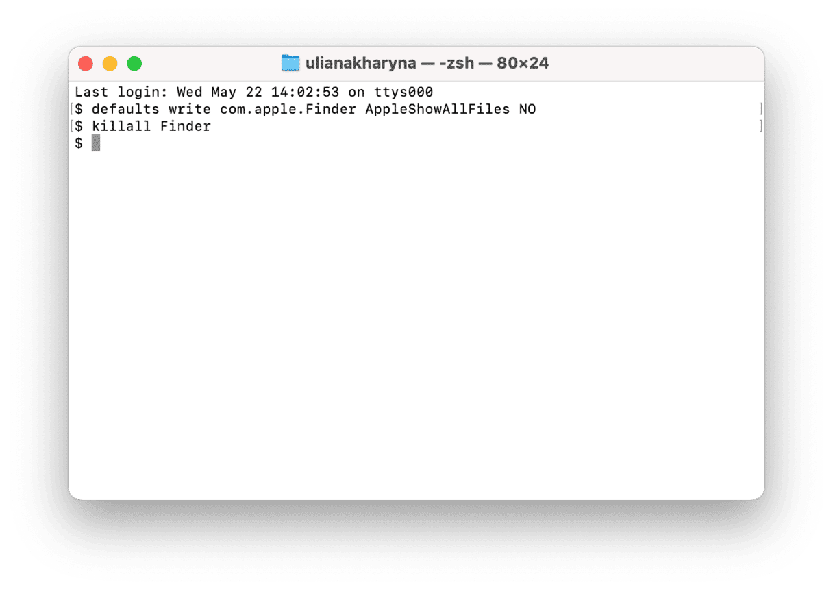 現在,這應該顯示每個隱藏文件夾,包括 var。一旦您準備好再次隱藏它們,請轉到終端並輸入以下命令,並在每個命令後按 Return 鍵:defaults write com.apple.Finder AppleShowAllFiles NO進而killall Finder