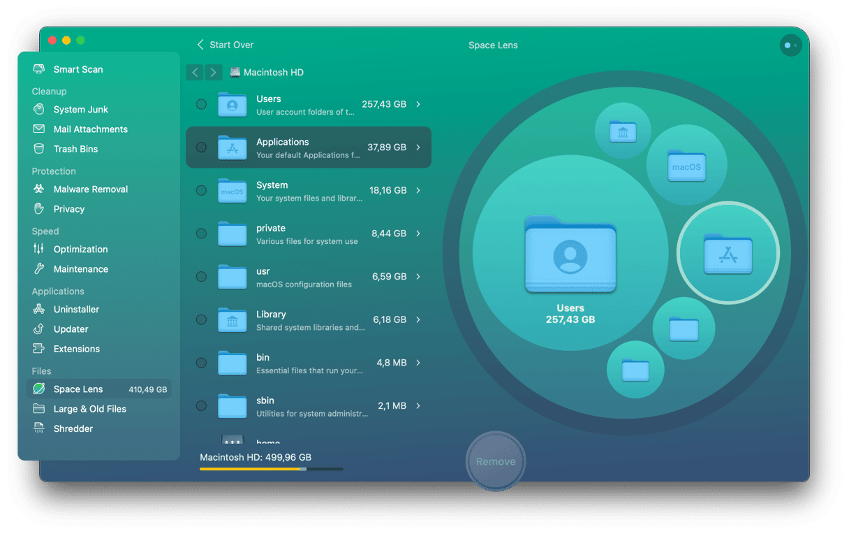通過下載 CleanMyMac,您可以可靠地獲得提高 Mac 性能所需的空間和處理能力。它具有 Space Lens 工具,可以在幾秒鐘內構建您的存儲地圖,並向您顯示 Mac 上的所有文件和文件夾。