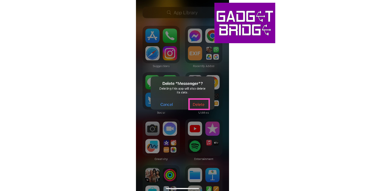 導航到 iPhone 應用程序庫中的 Messenger 應用程序,按住其圖標,然後選擇刪除應用程序。