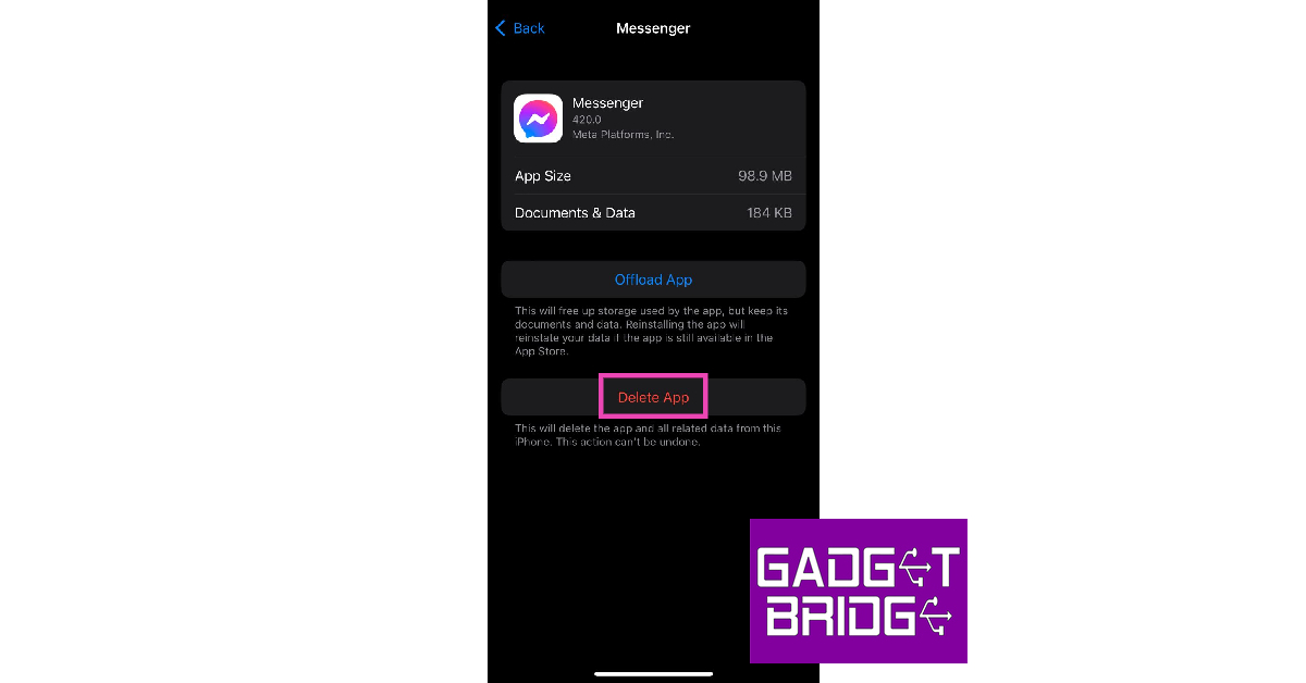 前往設置>常規>iPhone存儲,選擇 Messenger 並點擊刪除應用程序。