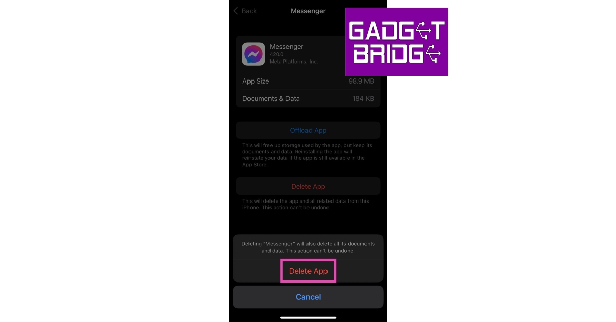 以下是從 iPhone 卸載和刪除 Facebook Messenger 應用的 3 種最常用方法。如果您想從手機中刪除 Messenger 應用而不刪除其數據(文檔、圖像等),您可以選擇“卸載”它。要卸載 Messenger 應用程序,請轉至設置>常規>iPhone存儲>Messenger並選擇卸載應用程序。
