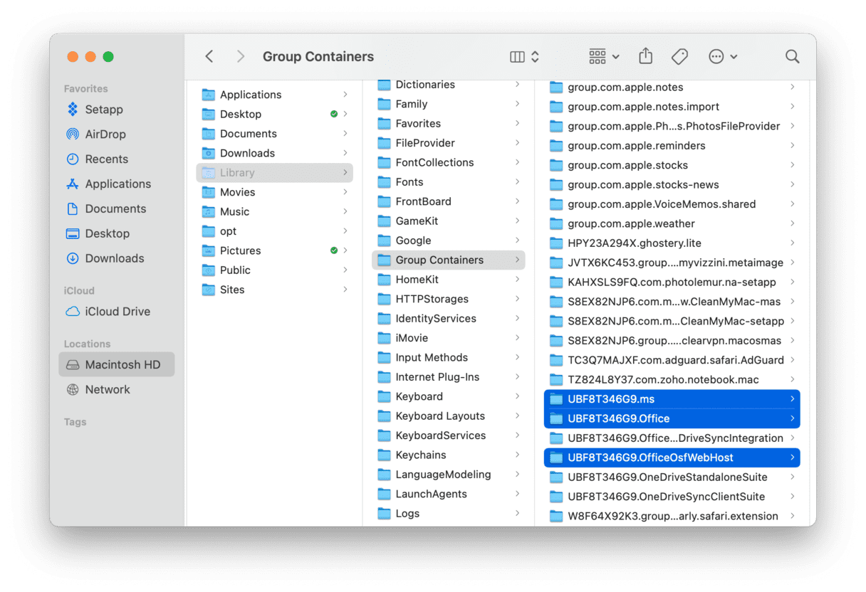 ~/Library並打開“組容器”文件夾。 - 找到下面的文件夾並將其移至廢紙簍(同樣,有些文件夾可能不存在):