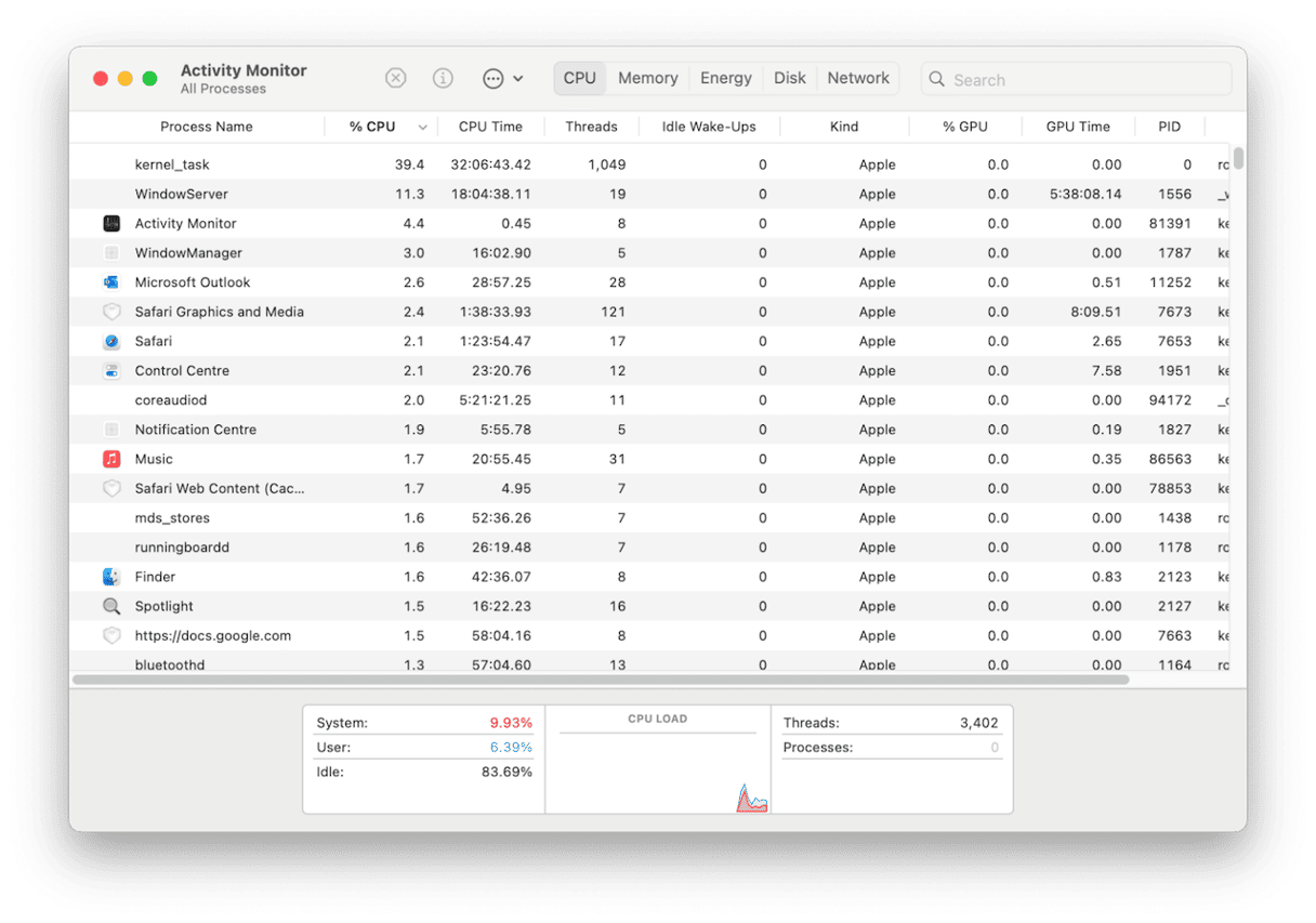 - 轉到“應用程序”>“實用程序”並打開“活動監視器”。