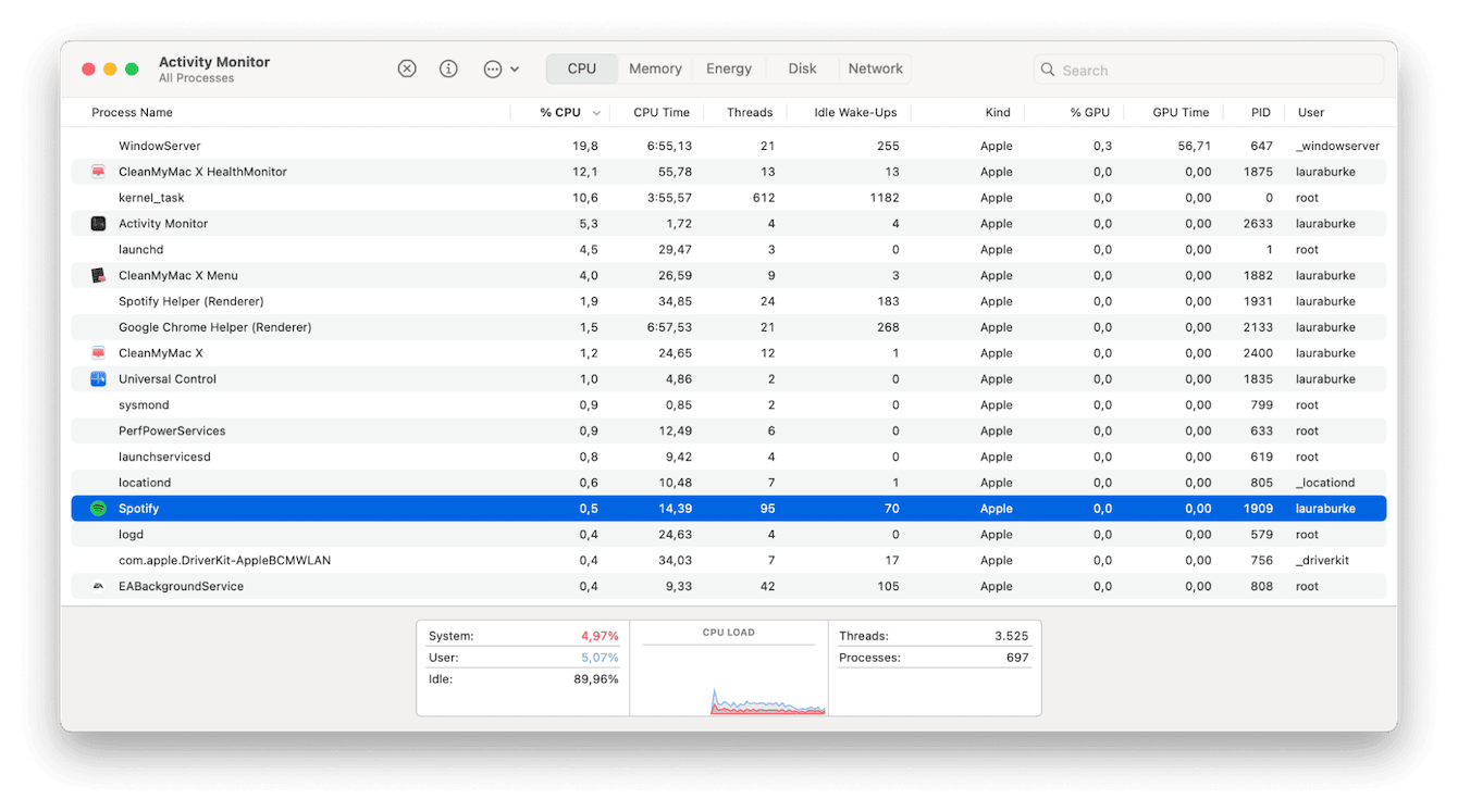 這聽起來似乎很明顯,但您會驚訝地發現有多少應用程序和程序正在未知地運行,從而降低您的 Mac 速度並耗盡您寶貴的 RAM。打開活動監視器實時查看正在運行的內容;方法如下: