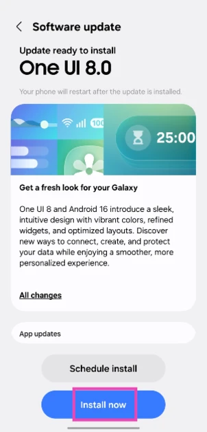 第6步:您的手機將重新啟動作為軟件安裝過程的一部分。重新啟動後,您就可以開始在設備上使用 One UI 8。