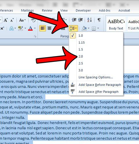 下面我們的指南繼續提供有關如何在 Word 2010 中加倍行距的附加信息,包括這些步驟的圖片。