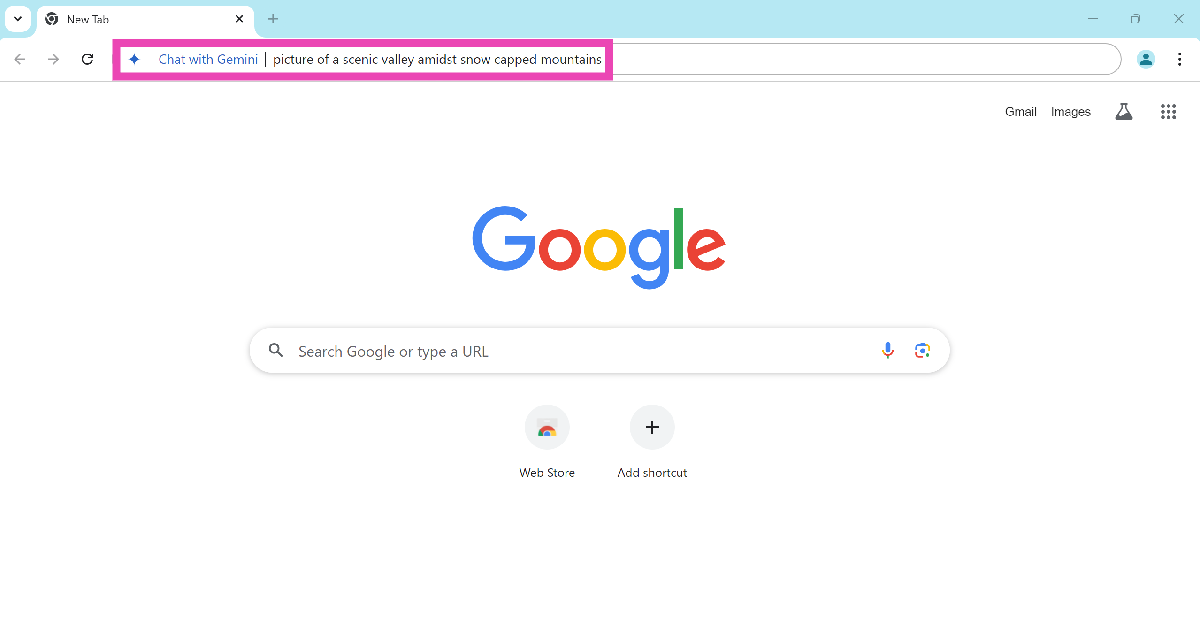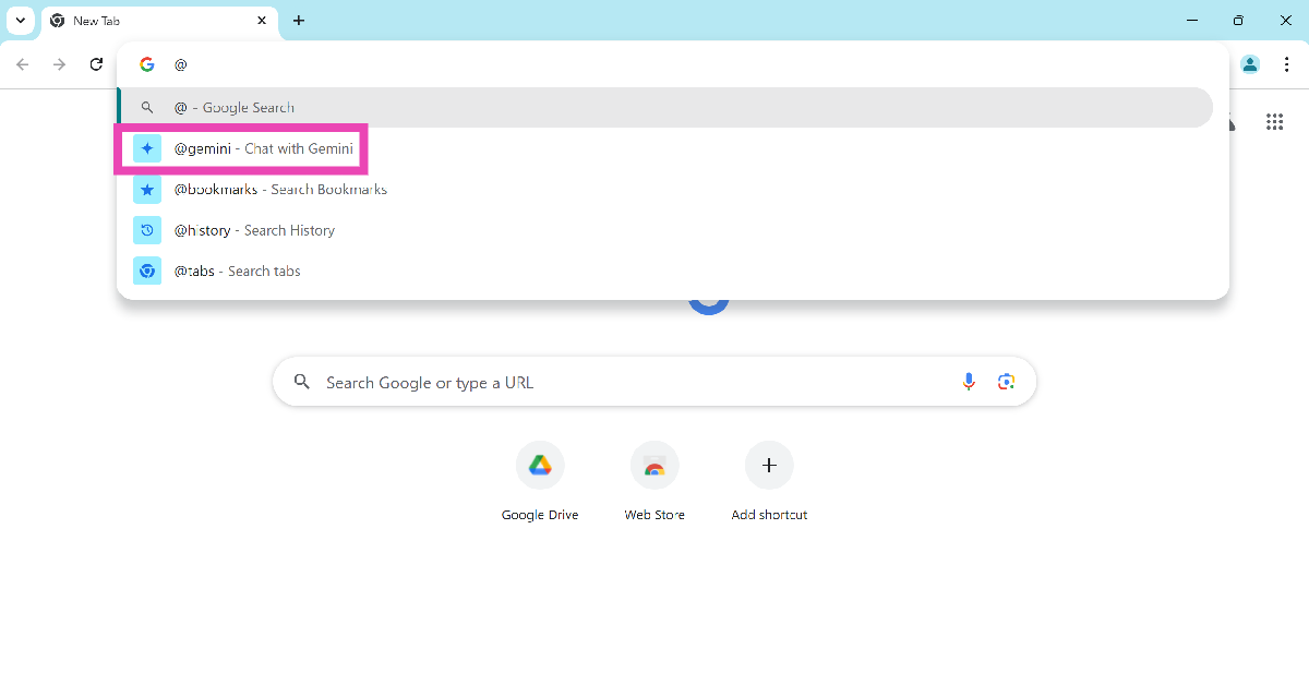 在電腦上啟動 Chrome,單擊地址欄,輸入 @,然後選擇 Gemini。輸入提示並按 Enter 鍵。