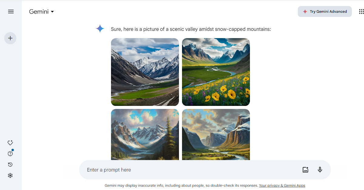 是的,您可以使用 Gemini 生成 AI 圖像。然而,到目前為止,Gemini 還無法生成人類的圖像。