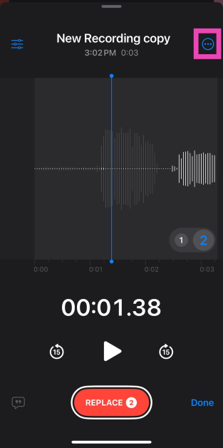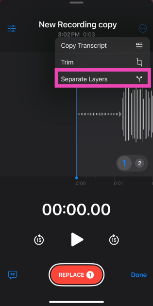 第6步: 停止完成後進行錄音。 iPhone 上的分層語音備忘錄有圖層圖標在他們旁邊。