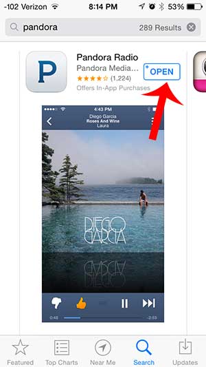 第 4 步:觸摸自由的觸摸 Pandora 應用程序右側的按鈕安裝,輸入您的 Apple ID 密碼,然後點擊好的並等待應用程序安裝。