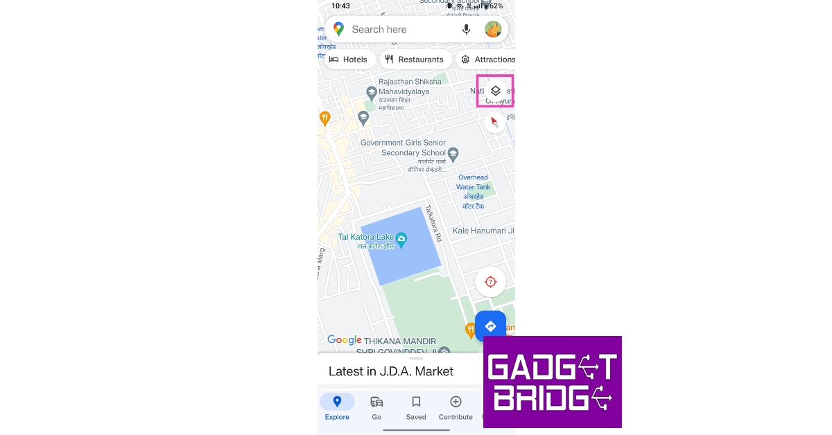 步驟2:點擊圖層圖標。您會在指南針圖標的正上方找到它。