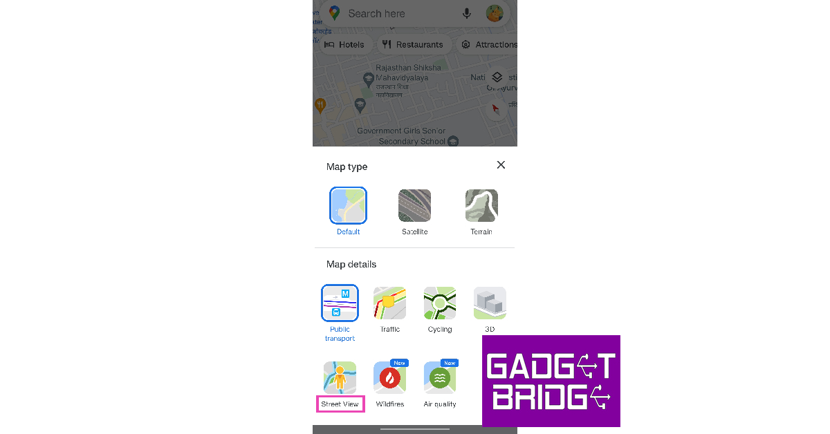 步驟3:在地圖詳細信息部分中選擇“街景”。