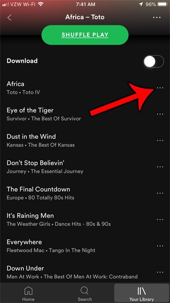 下面的教程將向您展示如何在 iPhone 上的 Spotify 應用程序中查看歌曲的專輯,以便您可以收聽該專輯或將專輯中的更多歌曲添加到您的播放列表之一。