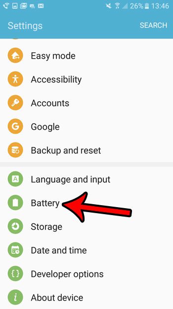 步驟 3:向下滾動並觸摸電池選項。