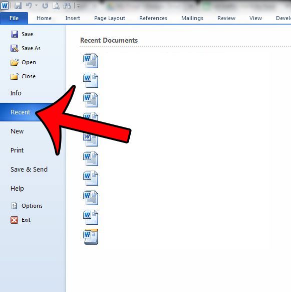 當您單擊“文件”選項卡上的“最近”選項時,Microsoft Word 2010 將顯示您最近處理過的文檔。