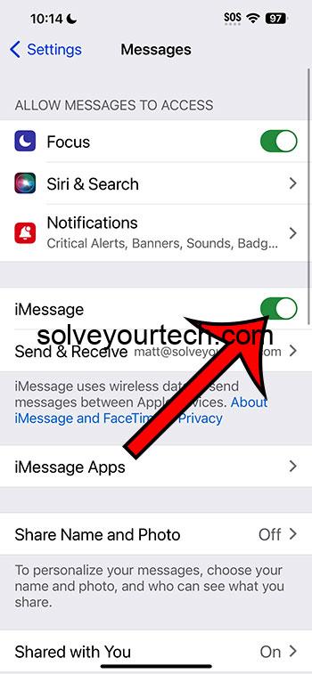 找到 iMessage 開關並將其切換到打開位置。