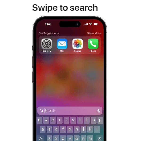 | 使用聚光燈搜索:從主屏幕向下滑動即可訪問 Spotlight 搜索并快速查找應用程序、聯繫人、文件和信息 | 無需滾動瀏覽無盡的頁面 - 立即找到您需要的內容。 |