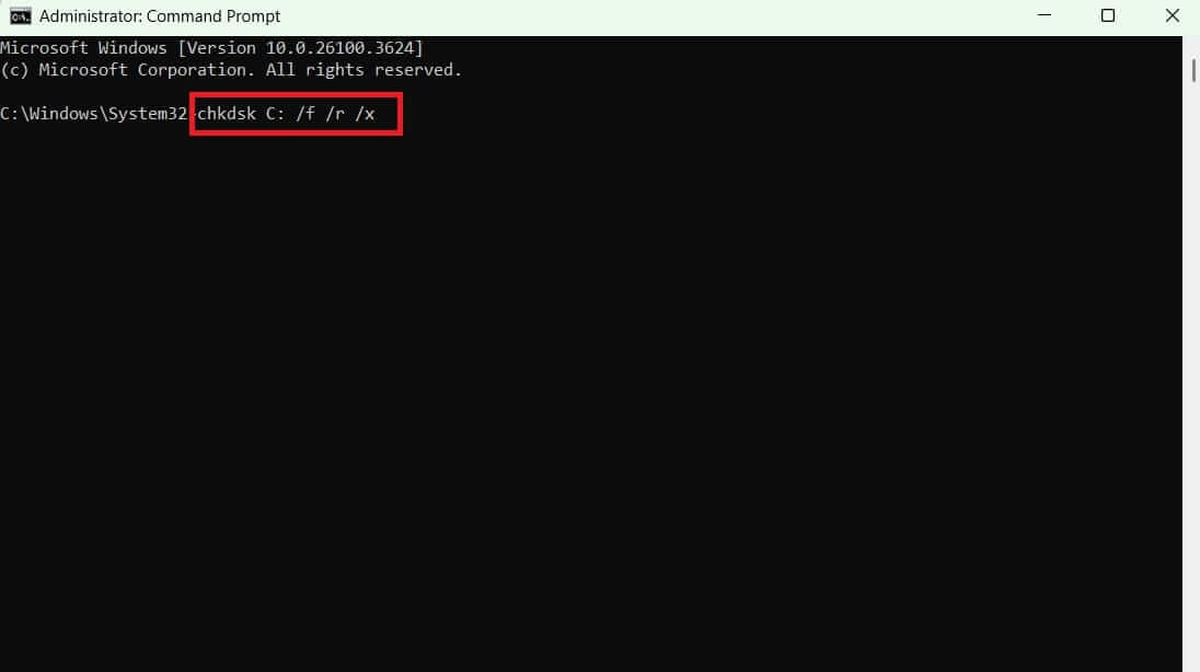 chkdsk C: /f /r /x(將 C 替換為損壞的驅動器盤符)並按 Enter 鍵修復驅動器。 CHKDSK 完成後,檢查驅動器以查看您的數據是否可以訪問。