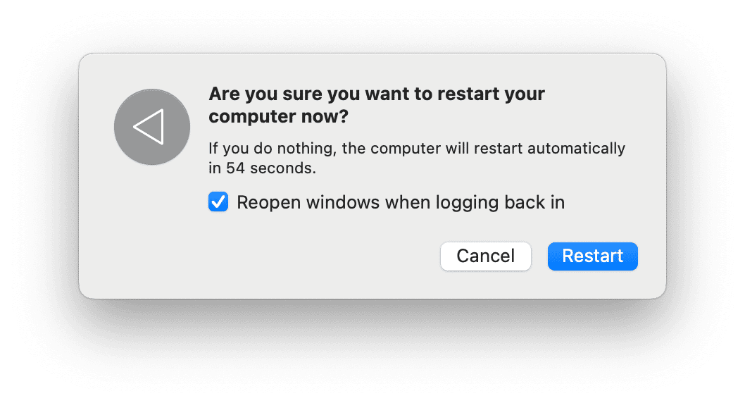 - 將出現一個彈出窗口 - 選擇是否要在重新啟動後重新打開窗口。