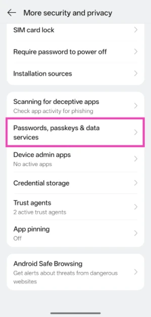 步驟3:向下滾動並點擊密碼、密鑰和數據服務。