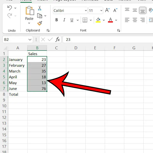 步驟 2:使用鼠標選擇要包含在總計中的所有單元格。