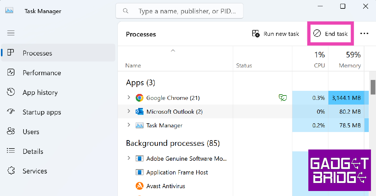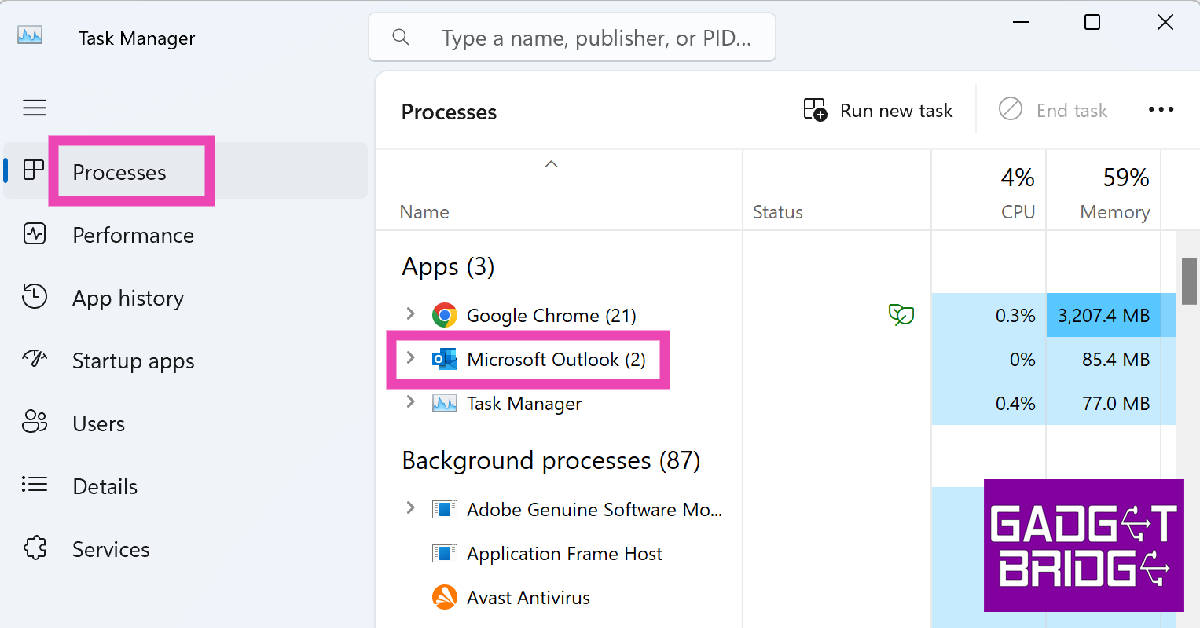您還可以嘗試重新啟動 Microsoft Outlook 以防止其崩潰。為此,您需要首先結束其進程。以下是您可以如何做到這一點。