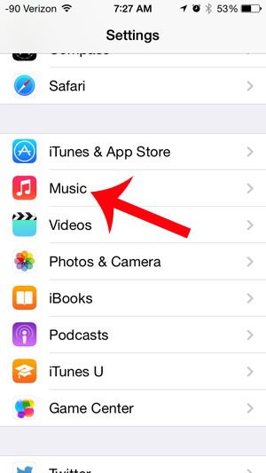 步驟 2:向下滾動並選擇音樂選項。