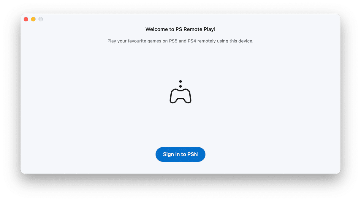 - 在 Mac 上打開 Remote Play 應用,然後選擇“登錄 PSN”。使用您在 PlayStation 上使用的同一帳戶登錄。