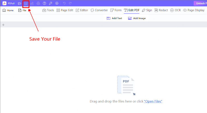 進行必要的更改後,單擊“節省”按鈕保存您所做的更改。PDFull 保證您的更改安全保存,不會影響導出或共享文檔的格式。
