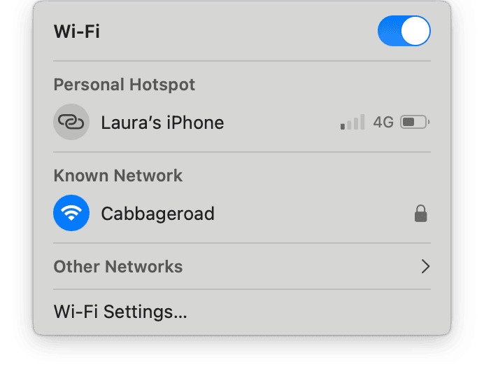 從頂部 Wi-Fi 菜單打開和關閉 Wi-Fi。