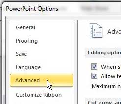 第四步:點擊先進的在左側的列中幻燈片選項窗戶。
