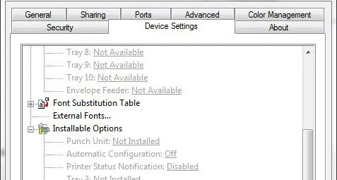 如果您在窗口頂部沒有看到此特定選項卡,則說明您的打印機型號無法訪問可阻止 HP Laserjet 打印狀態通知的菜單。