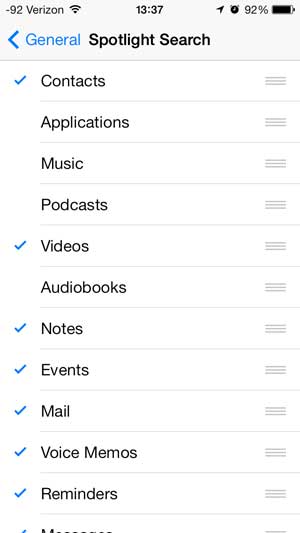 步驟 4:選擇要包含在 Spotlight 搜索中的選項。