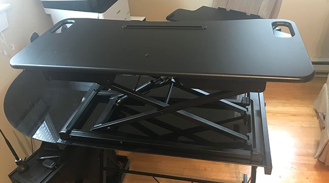當您準備好站起來時,可以使用前面提到的槓桿將桌子升高到所需的高度。桌子沒有任何特定的高度間隔或任何東西,因此當您站在桌子前面工作時,您可以將其升高到舒適的高度。由於人們(以及他們現有的辦公桌)的高度不同,這是確保任何想要使用站立式辦公桌的人都能得到滿足的好方法。
