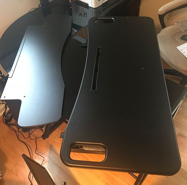 由於工作站的加入,我的顯示器的高度比之前提高了約四英寸。我實際上更喜歡新的設置,但如果您正在考慮購買它,則需要注意這一點。您放置在工作站主要部分的所有物品都將比以前高約四英寸,鍵盤將高約一英寸。