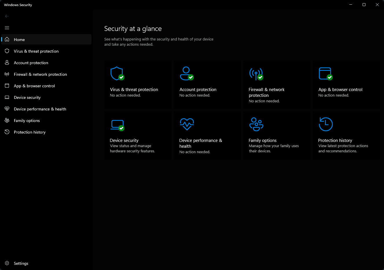 安全應用程序會定期收到 Microsoft 的更新,幫助其捕獲出現的新型威脅。您可以從“開始”菜單或設置中打開 Windows 安全應用程序,從而輕鬆檢查一切是否正常運行。該應用程序包括防火牆保護,可阻止不需要的互聯網連接。對於基本用戶,Windows Security 通常會提供足夠的保護來滿足他們的需求,而無需任何額外費用。高級用戶可能仍然更喜歡額外的工具,但許多安全專家表示,Windows 安全應用程序近年來有了很大改進。其簡潔的界面使您可以輕鬆查看保護狀態,只需單擊幾下即可檢查每個安全區域。 Windows 安全應用程序不需要任何額外費用;它已包含在您的 Windows 11 系統中並可供使用。