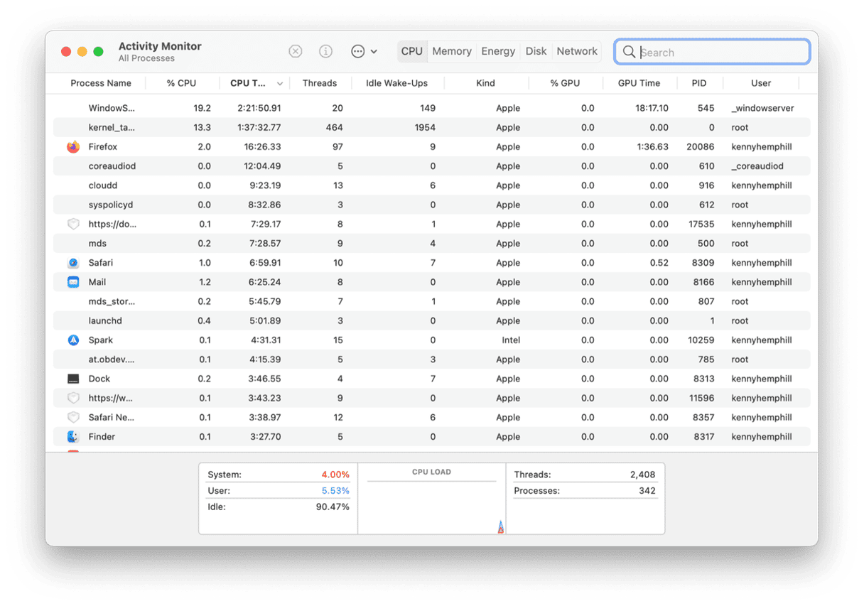 - 轉到“應用程序”>“實用程序”並打開“活動監視器”。