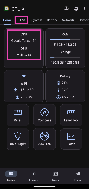 基準測試和設備信息應用程序可讓您查看手機的詳細 CPU 規格。以下是您如何使用 CPU X 應用程序來查找為您的 Android 智能手機供電的處理器的名稱。