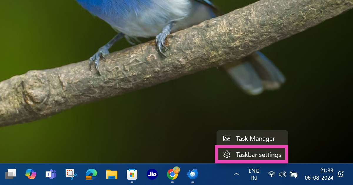 第 1 步:右鍵單擊任務欄並選擇任務欄設置。