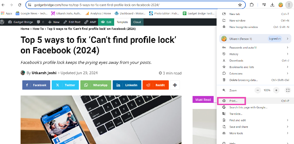 步驟2:擊中省略號並選擇列印。
