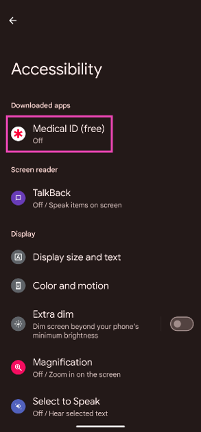 第6步:在“輔助功能”菜單中,點擊醫療ID。
