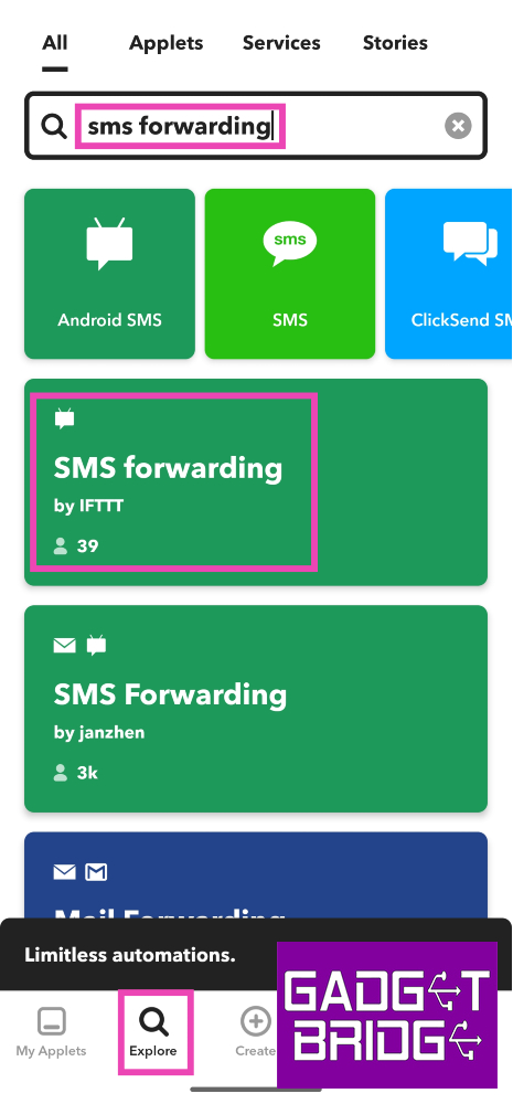 步驟3:搜尋短信轉發並選擇 IFTTT 創建的小程序。
