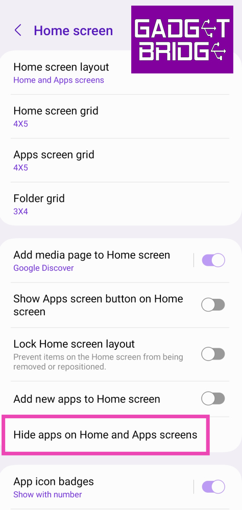 步驟2:選擇隱藏主屏幕和應用程序屏幕上的應用程序。