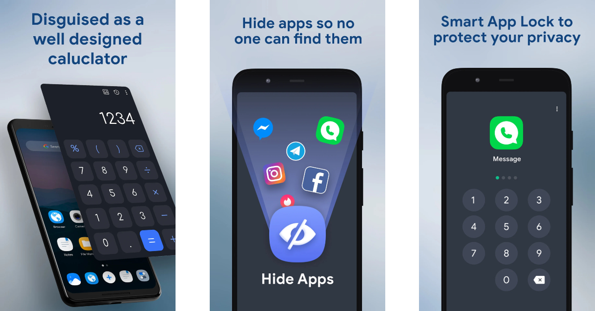 HideU:計算器鎖、應用程序隱藏器和私人區域是 Android 上最好的第三方應用程序隱藏器之一。