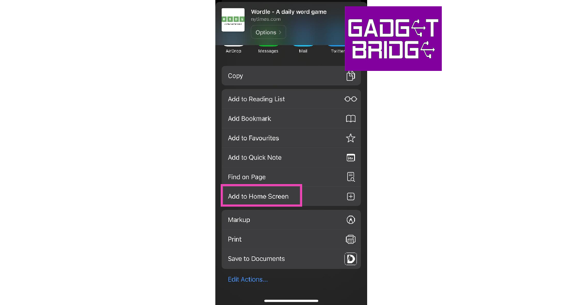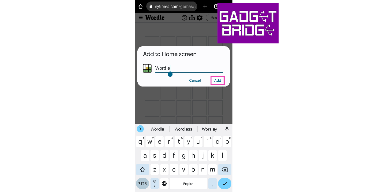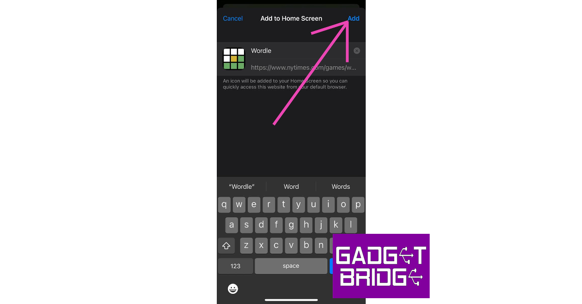 第6步:觸摸並按住 Wordle 圖標將其放置在主屏幕上。您還可以點擊“添加”。