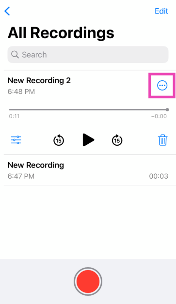 步驟3:擊中省略號旁邊的錄音並選擇分享。